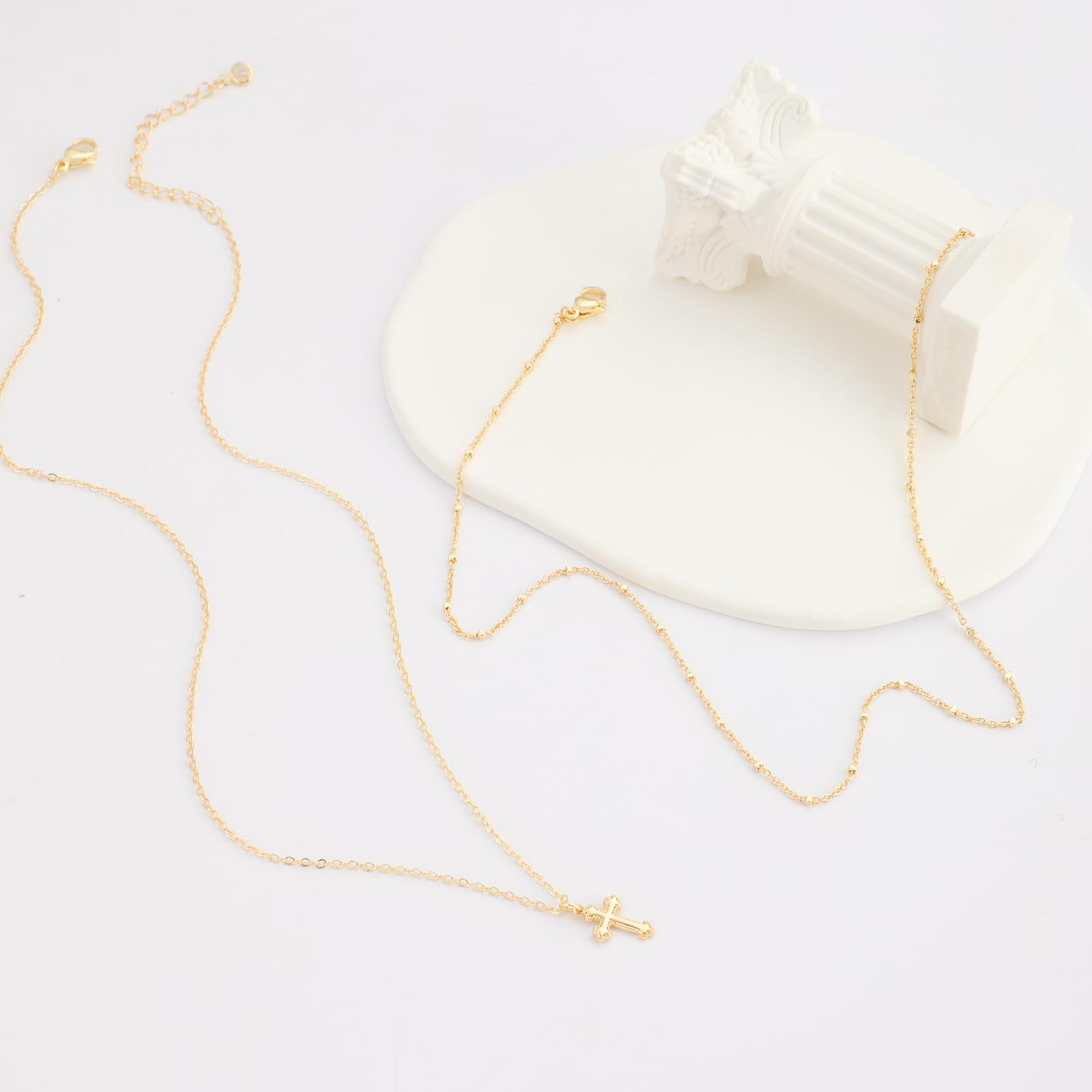 - Cross necklace for women: cross can bring happiness and good fortune; the dainty gold cross necklace is meaningful and classic, and suitable for everyday wear or dressing up for special occasions; the plating is beautifully done, giving it an authentic and elegant appearance; adjustable chain allows you to find the perfect length for your style